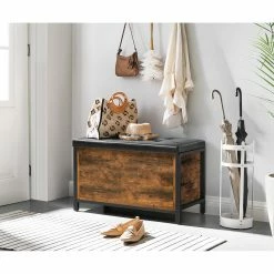 GWINNER Banc dâentrĂ©e Style – Cuir vĂ©ritable / Placage en bois vĂ©ritable – Noir / ChĂȘne