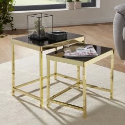Studio Copenhagen Bouts de canapĂ© Abee I (2 Ă©lĂ©ments) – Imitation marbre noir / Noir