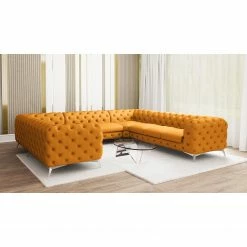 Jack & Alice CanapĂ© panoramique Laviva I – Microfibre Enza: Safran – Alignement Ă gauche
