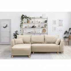 Norrwood CanapĂ© dâangle Luparo I – Beige – MĂ©ridienne courte Ă gauche (vue de face)