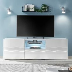 Loftscape Meuble TV Cailla – Blanc brillant / Imitation chĂȘne – Blanc brillant – Largeur : 188 cm