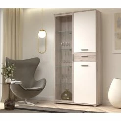Fredriks Vitrine d’angle Amalia I – Ăclairage inclus – Imitation hĂȘtre – Imitation chĂȘne