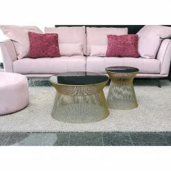 Loftscape Table basse Carrabelle II – Verre / MĂ©tal – Gris / DorĂ©
