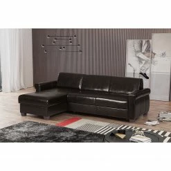 Ars Natura Canapé d’angle Clonee – Cuir véritable – Noir – Méridienne courte à gauche (vue de face)