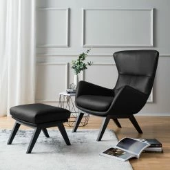 Studio Copenhagen Fauteuil relax Anderson I – Cuir vĂ©ritable Neka : Noir – Noir – Noyer