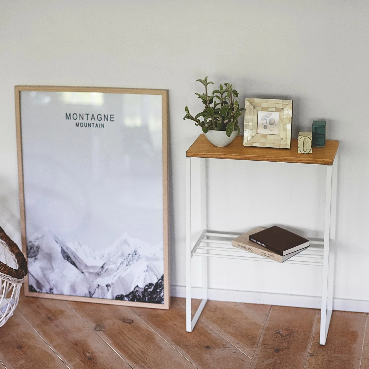 - Plateau de table : frêne massif verni