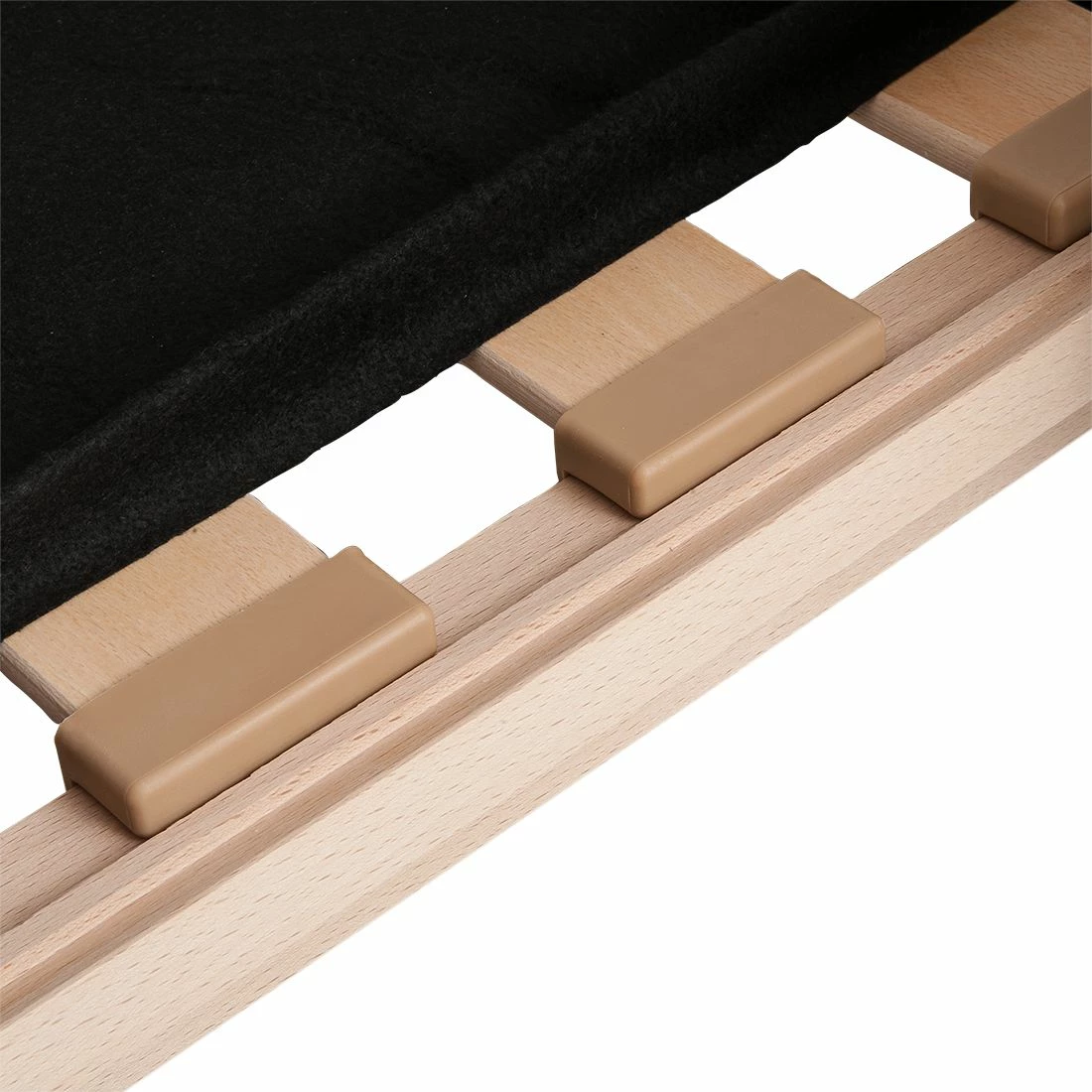 - Suspension : lattes en bois recouvertes de feutre composite