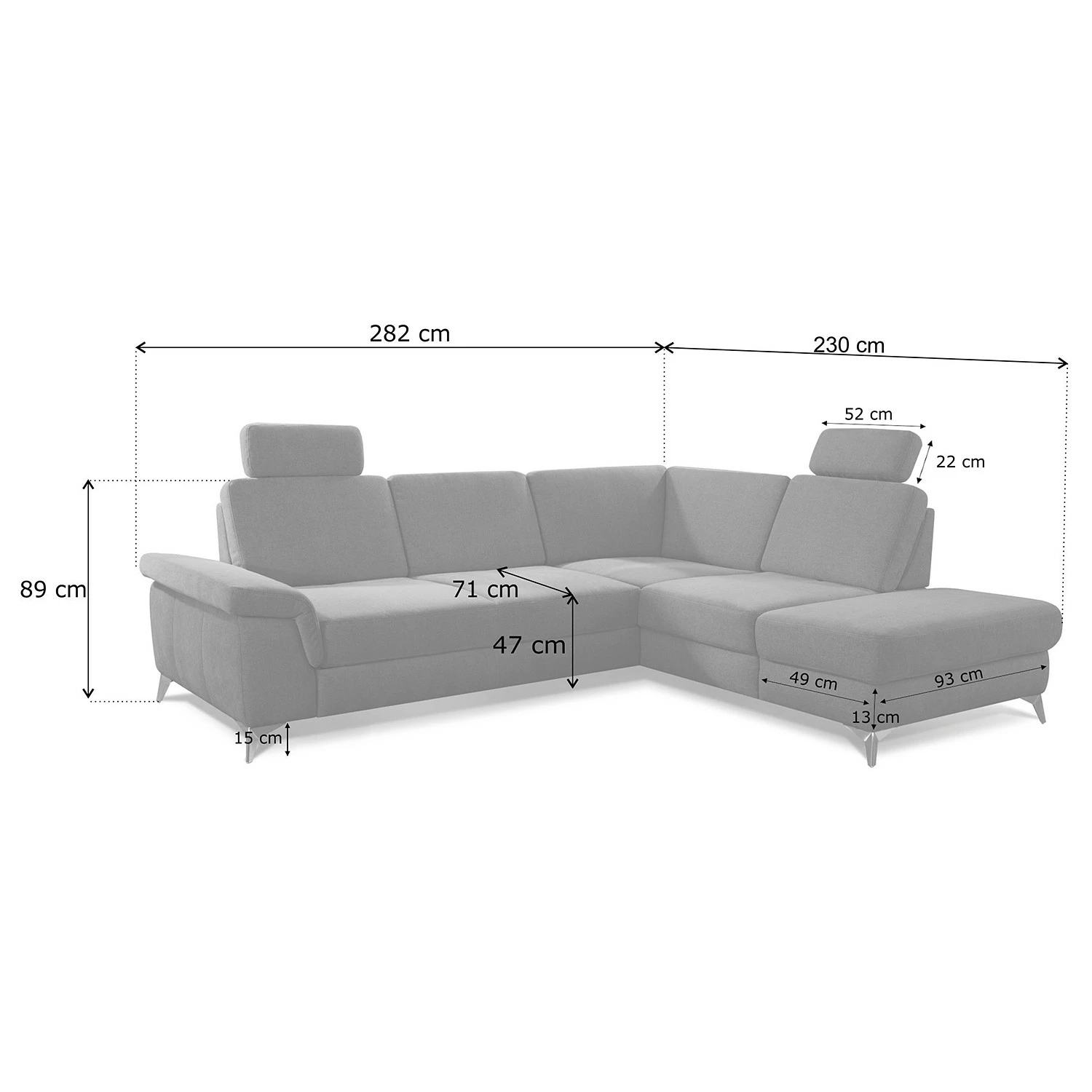 - Largeur de la méridienne longue : 228 cm