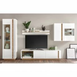 - Contenu de la livraison : Ensemble comprenant 1 vitrine, 1 tablette murale, 1 meuble TV et 1 vitrine murale t, sans éclairage ni accessoires