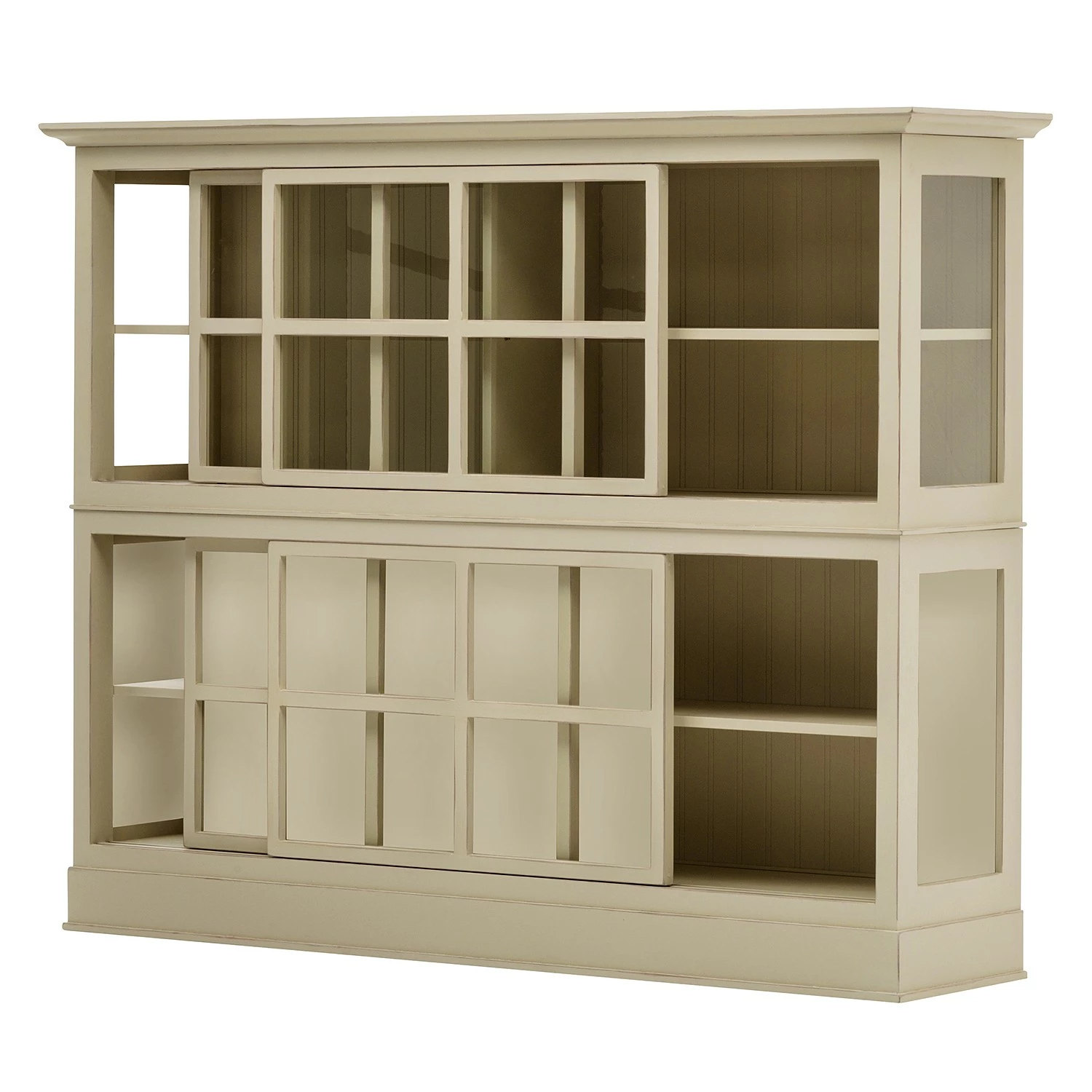 - 2 portes coulissantes, chacune avec 1 tablette en bois
