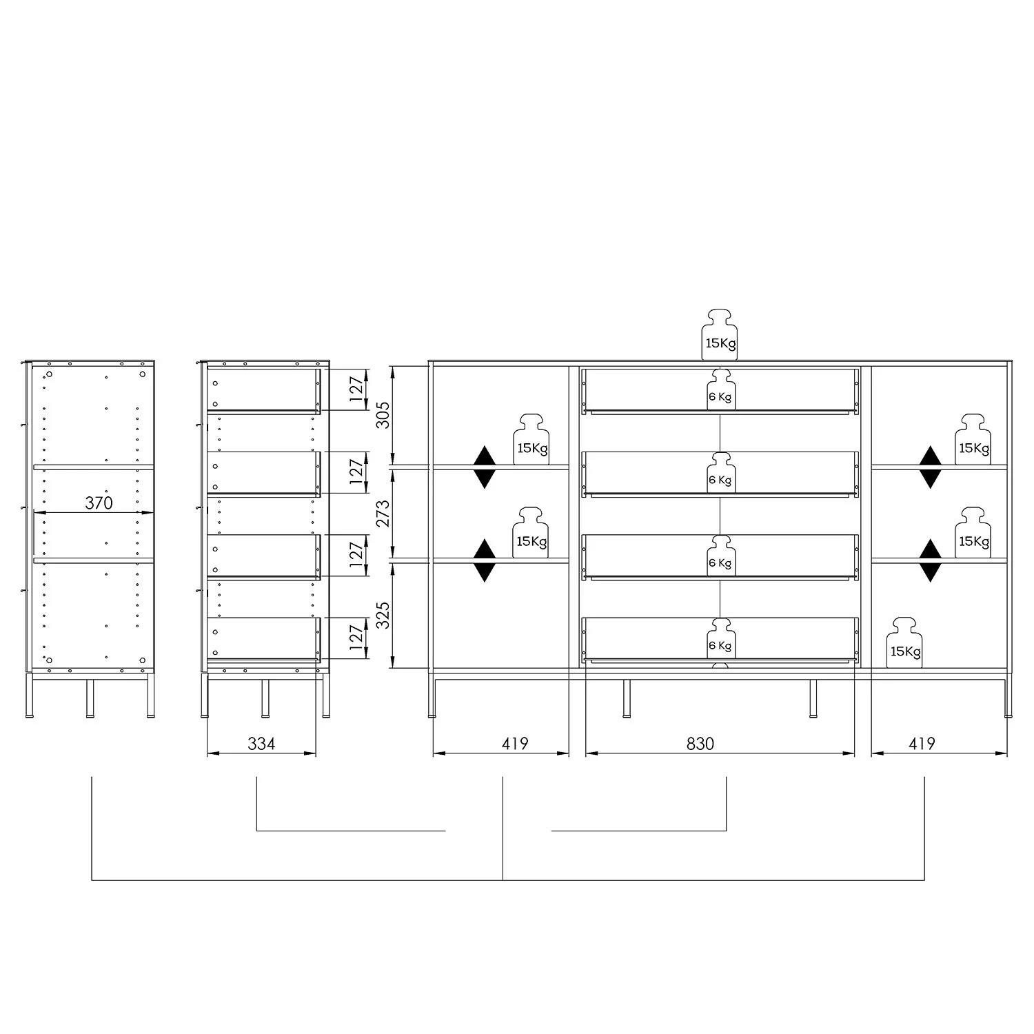 - Charge maximale des étagÚres : 15 kg