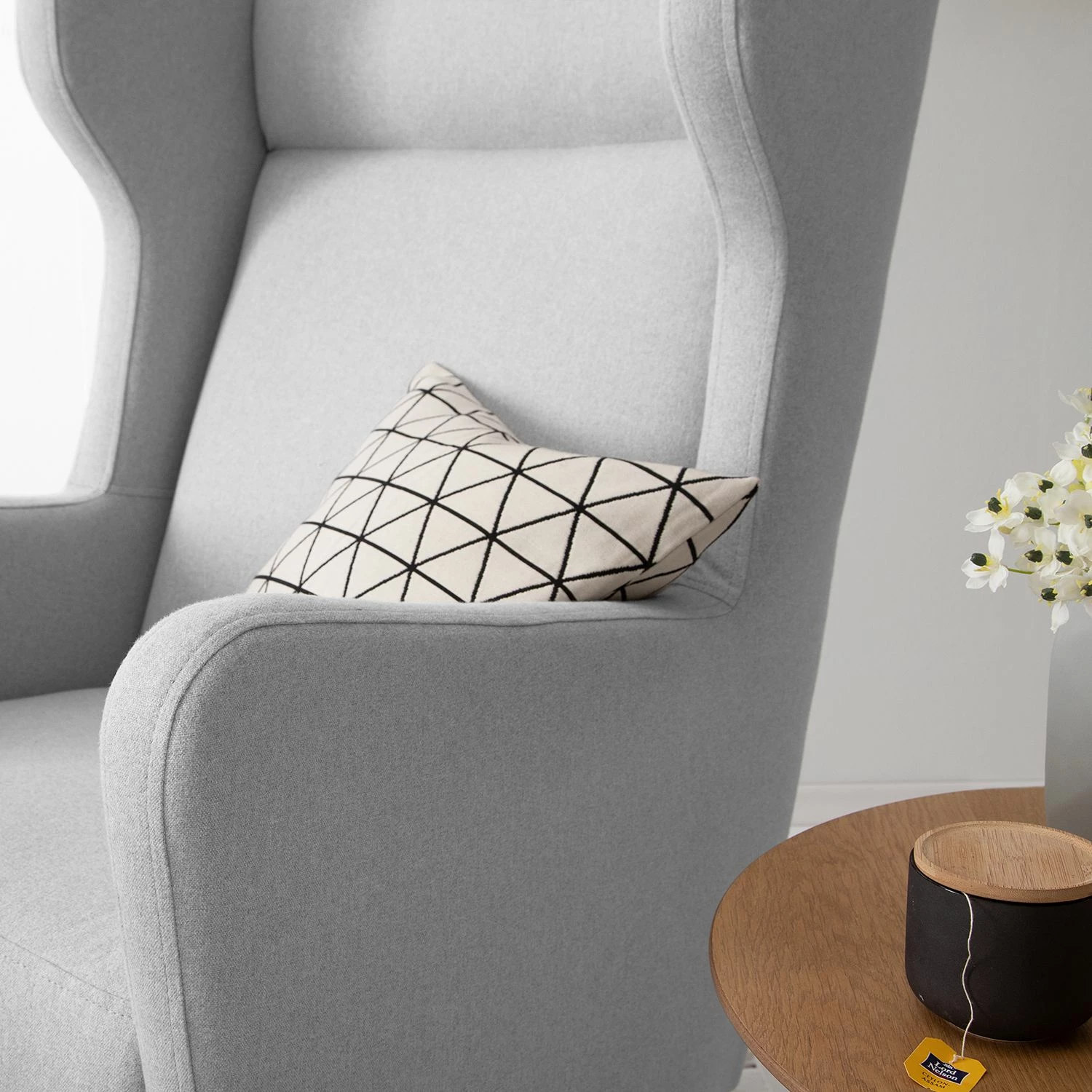 - Contenu de la livraison : fauteuil à oreilles avec repose-pieds en option, sans décoration