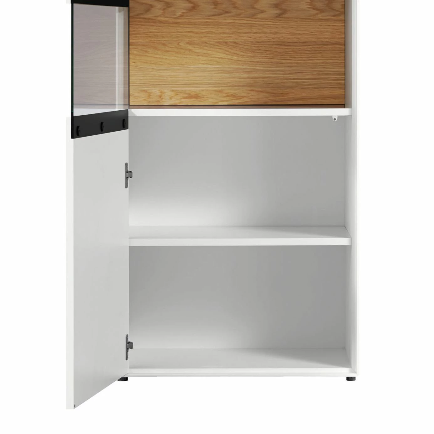 - Contenu de la livraison : Vitrine avec panneau arrière réversible et pieds, sans accessoires