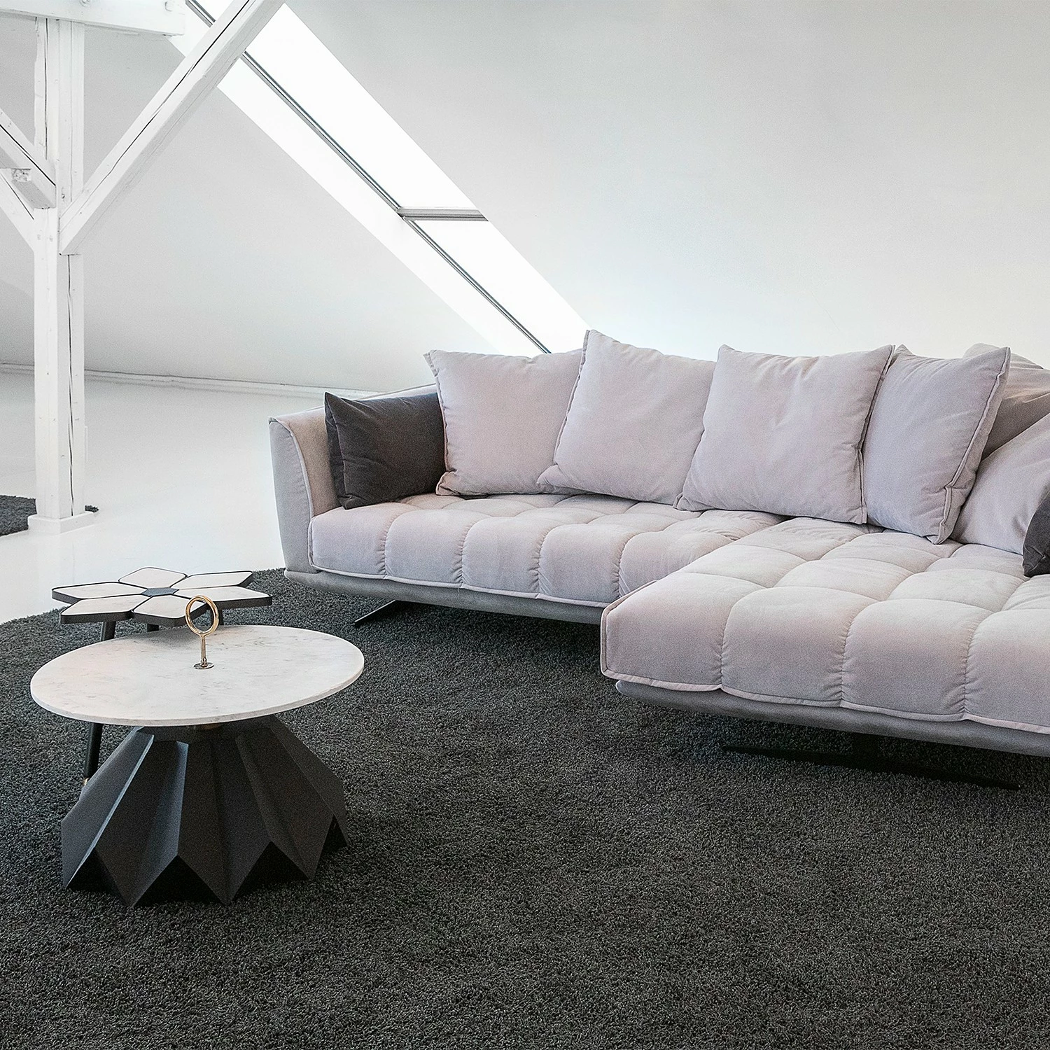 - Plateau de table : marbre blanc