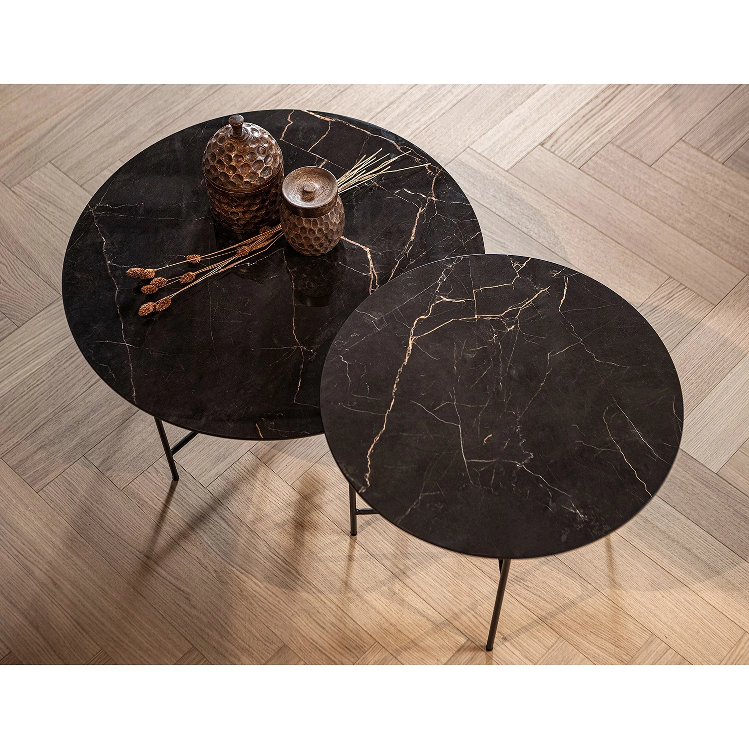 - Plateau de table : marbre noir / doré